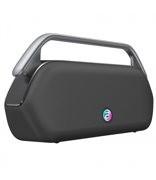 Designed for extended use, the Boost Max offers up to 16 hours of playtime (at 50% volume) on its built-in battery, and supports fast charging via USB-C. The unit is rugged too — it features IPX5 water resistance and a durable carry handle for portability. An RGB light effect adds visual flair that syncs with your music, making it ideal for parties or outdoor gatherings.